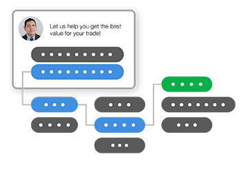 Using natural language responses, move clients through critical steps of the car-buying journey, including scheduling a test drive, valuing a trade-in, pre-qualifying for credit, and getting an e-price.